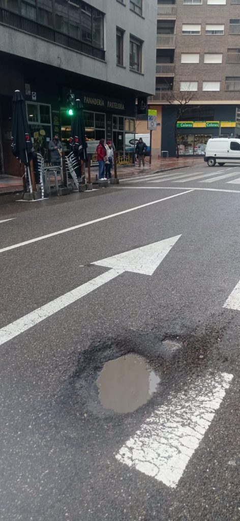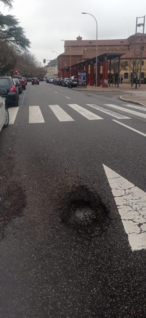 Los leoneses viven cada día una auténtica yincana por la ciudad, “con aceras impracticables, baldosas con las que te tropiezas mientras los conductores tratan de sortear en cada calle socavones enormes y numerosos baches, lo que supone un aumento considerable por daños personales y materiales, un aspecto nada desdeñable también para las arcas municipales”.