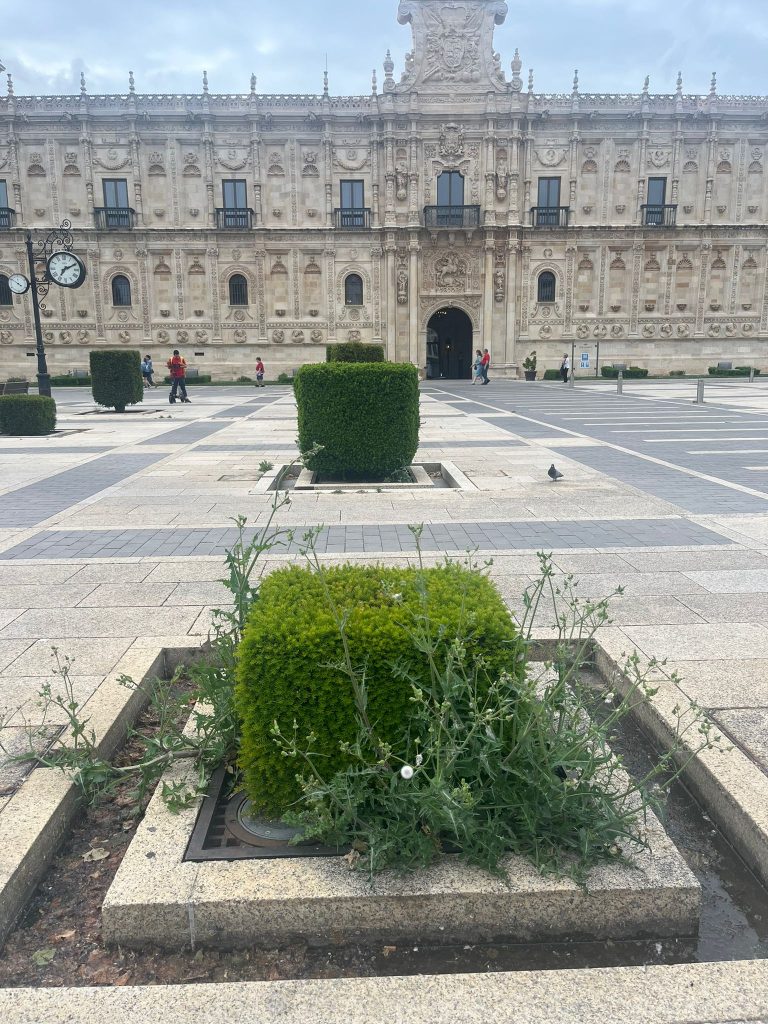 Además, los populares han señalado también el estado de la propia Plaza de San Marcos, con todas las jardineras abandonadas, donde los setos y la maleza salen sin control. Un problema que se suma a las baldosas rotas o que se mueven al pisarlas, lo que causa más de algún susto a viandantes y, especialmente, peregrinos.