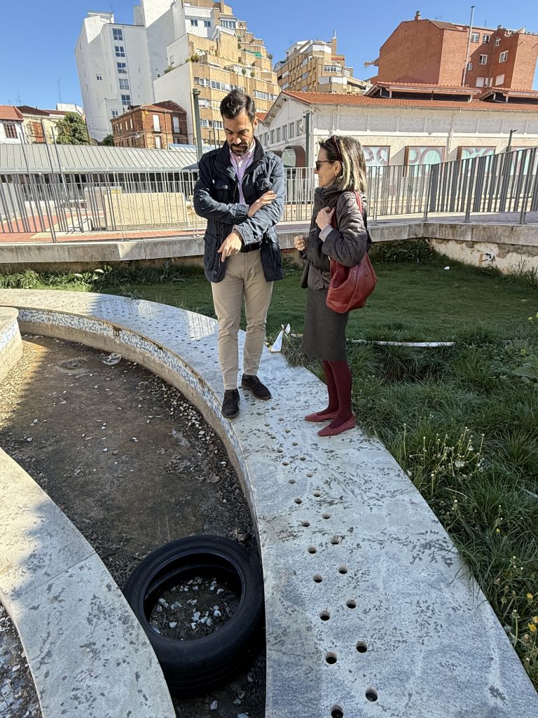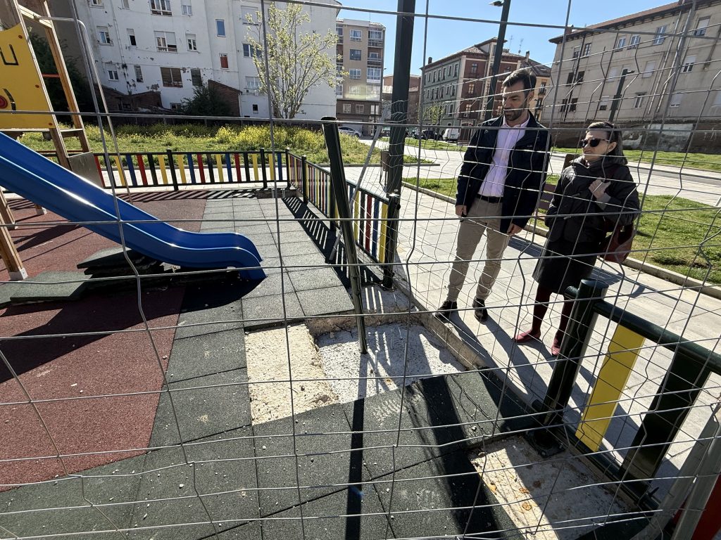 El portavoz popular, David Fernández, y la concejala Ana Franco han recorrido esta mañana esta zona del centro de la ciudad, que el equipo de gobierno de José Antonio Diez mantiene en un estado lamentable y también peligroso, con basura, elementos rotos, hierros al aire y, lo que es peor, una zona infantil que debería estar precintada para que no accediera los niños.